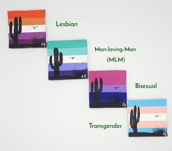 3x3 inch acrylic pride paintings with a desert foreground